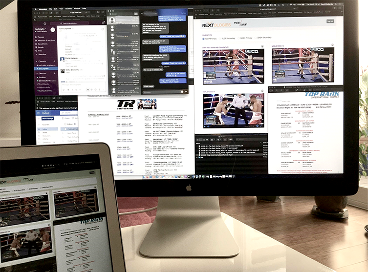 This collaboration between PSSI, Nextologies and Top Rank marks not only the first all-IP origination for a major boxing event, but also the first IP live international distribution to several countries. To help minimize the overall on-site presence of talent and staff, PSSI, in close partnership with Nextologies, also engineered a solution to integrate ringside commentary remotely over a customized IP network.